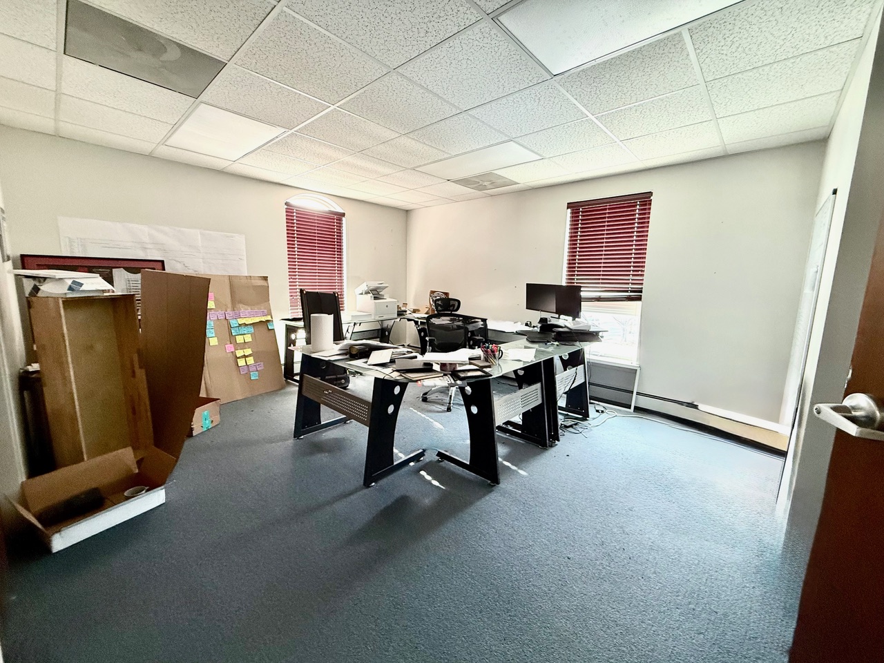 Hard to find, almost 9,000 SF two level commercial flex building in Lancaster on a 0.9 acre corner lot at a signalized intersection in Lancaster. Enter at grade level on either floor. There are five 12′ Truck doors on the lower level with a heated floor in the garage area. Heat operates on a comfortable radiant waste oil system which can also use regular oil. Lower level also includes a restroom with shower stall. The first floor is built out as office area and includes a reception area, 7 -8 large private offices with windows, two handicap accessible restrooms, an open area which could be used for a conference room or showroom area, a lunch room and storage areas.