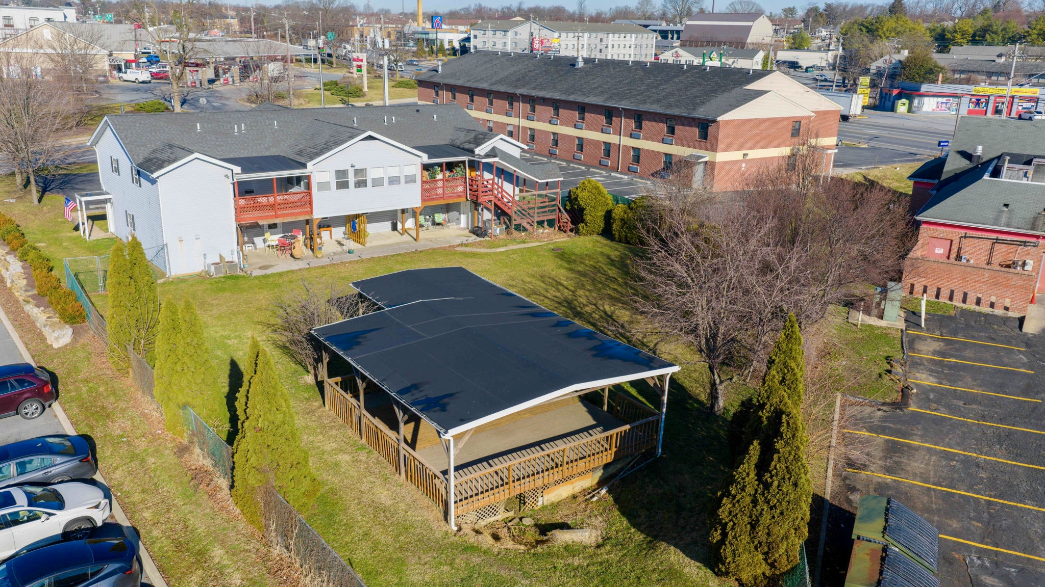 Next to the hotel and included in the sale price of the property is a 5,000 SF, 4-unit apartment building. There are two 3-BR units and two 1-BR units. (One of the 3BR’s rents as a 2BR due to the 3rd bedroom being made into a living room.) The 2nd floor apartments include a balcony or deck. Additionally there is a fenced backyard with a large covered pavilion, which is a nice tenant amenity! Below market rents offer tremendous upside potential. Apartments offer steady income in the off season and throughout the year. Seller has a hassle free automated system similar to AirBnb’s to facilitate hotel guest bookings and permit automatic guest check in and room entry.
