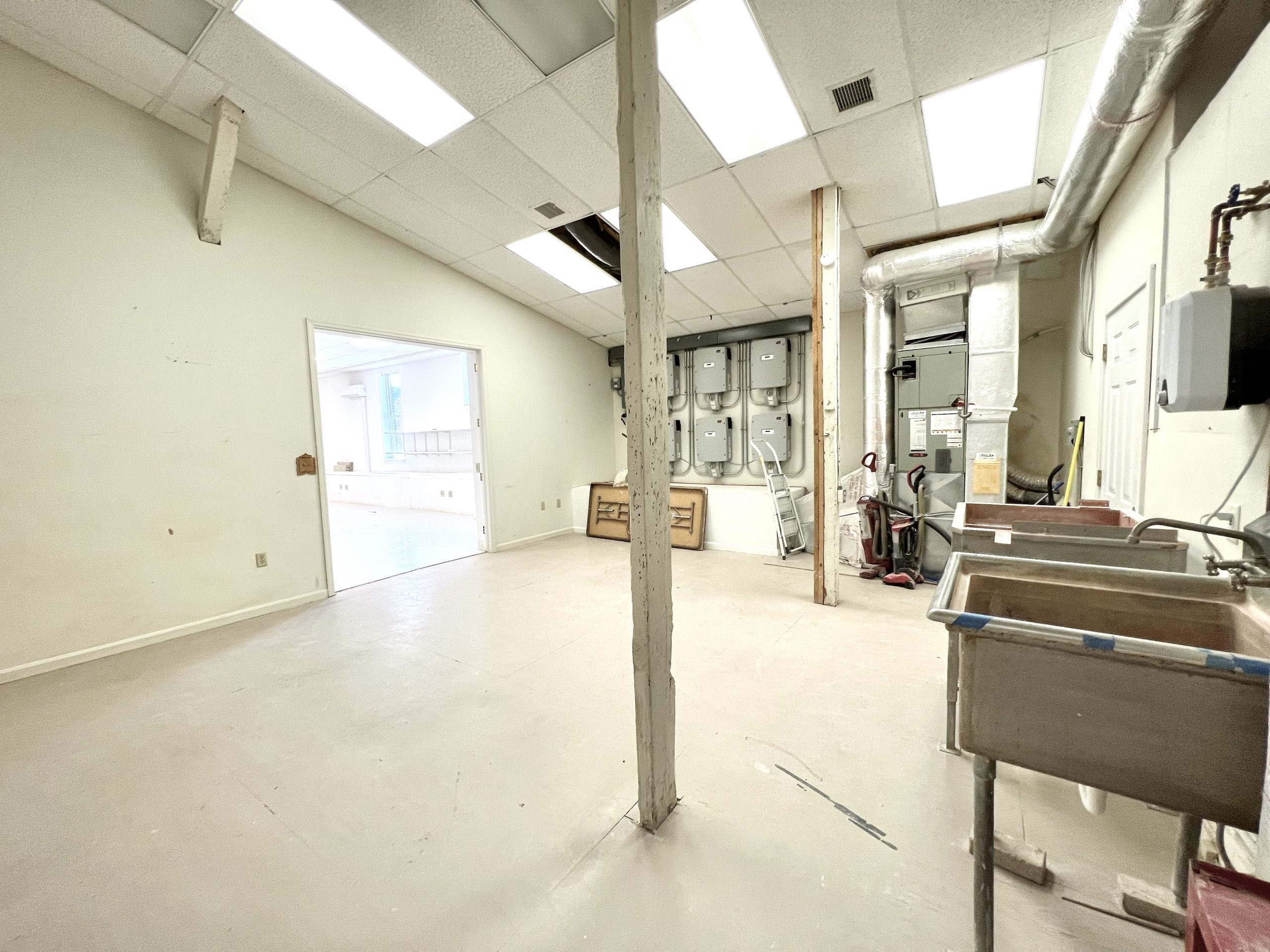 The east side of the building has a 3,000 SF, high-ceiling warehouse space with loading dock and leveler. Also, includes a parking spot for one truck. 9 Visitor parking spaces immediately outside entry door. Property includes a rooftop solar panel system which owner says saves about $5,000 per year. This allows owner to sell energy back to the grid. As noted, the sale of this property ALSO includes a 0.625 acre lot with 31 parking spaces.
